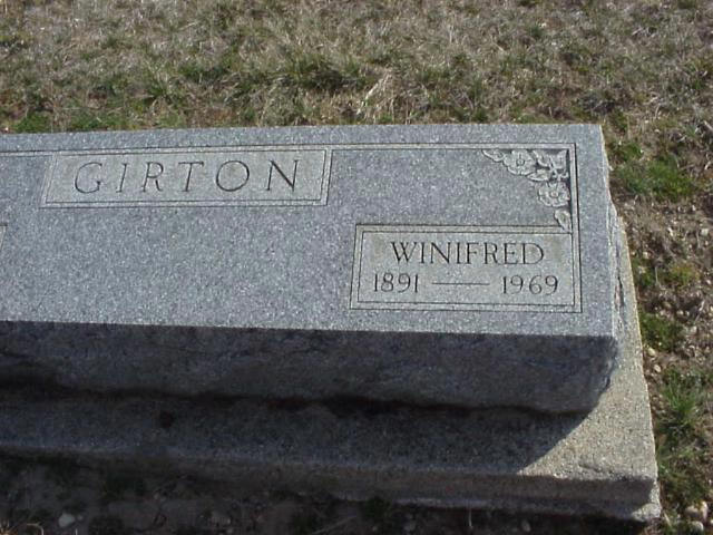 Old Perkinsville Cemetery, Madison County, IN, Headstone Reads: GIRTON Winifred 1891-1969 Winnifred Louise (Harless) Girton, D/O Elias & Nellie Harless, & her husband, Rollie Lincoln Girton. She was born 8/8/1891, died 1/14/1969. Rollie 1891 to 1945 Submitted by Millie Adams (millie.adams@att.net)